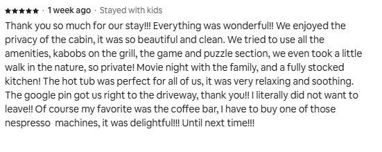 Looking for the perfect place to escape or relaxing stay in the country? Look no further than The Trillium Lane Cabin! This beautifully rustic 3-bedroom home sleeps 9 (2 of the bedrooms: Open loft design—an airy, connected space overlooking the rest of the cabin, though not private rooms) and features a secluded hot tub, private patios, large side yard for games, ping pong, a gas BBQ grill, Smart TV, coffee, Infinity Game Table, and more!